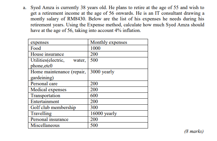 Solved Syed Amza Is Currently 38 Years Old He Plans To Chegg Com